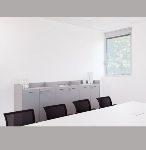Mobile contenitore Smart di media altezza nel colore grigio con spondine superiore.